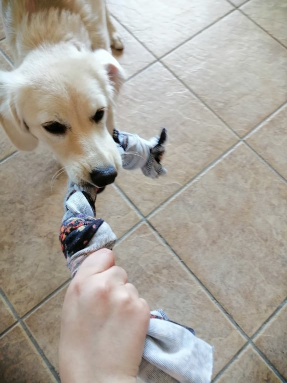 Από ένα μπλουζάκι μπορούμε να δημιουργήσουμε υπέροχα παιχνίδια για σκύλους και γάτες! Συνήθως δωρίζω τα ρούχα που δεν χρειάζομαι, αλλά πρόσφατα αποφάσισα να κρατήσω κάποια μπλουζάκια και να φτιάξω παιχνίδια για το κατοικίδιο μου. Δεν απαιτεί χρόνο, ούτε πολλά υλικά, απλώς χωρίστε την μπλούζα σε 3 λωρίδες, δέστε έναν κόμπο όσο το δυνατόν πιο κοντά στο ένα άκρο των λωρίδων και αρχίστε να κάνετε πλεξούδα μέχρι να φτάσετε στο κάτω μέρος, όπου θα δέσετε πάλι έναν δεύτερο κόμπο.